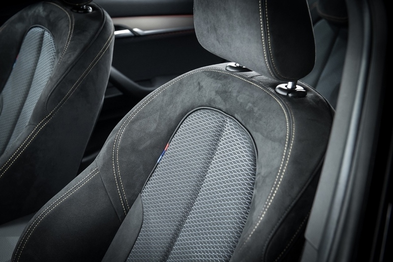 全新BMW X2 sDrive20i M Sport X所搭載的M Sport X套件也為全新BMW X2的內裝注入截然不同搶眼運動風格,全新碳黑鋁質格紋飾板以低調的金屬質感為座艙定調,儀錶檯上的對比縫線凸顯BMW X2高品質內裝的講究,觸感厚實的M款真皮方向盤採三輻式造型,後方並設有換檔撥片,坐上駕駛座的瞬間腎上腺素隨之飆升。內裝跑車座椅換上Alcantara麂皮搭配Micro Hexagon高級織布材質,碳黑色的座椅面料將競技氛圍表露無遺,並繡上M Sport X / M Sport套件專屬的黃色與藍色縫線,對比強烈的震撼視覺印象從進入座艙開始難以抹去。若喜愛真皮內裝風格,M Sport X / M Sport套件亦可選用質感出眾的Dakota真皮內裝做為搭配。