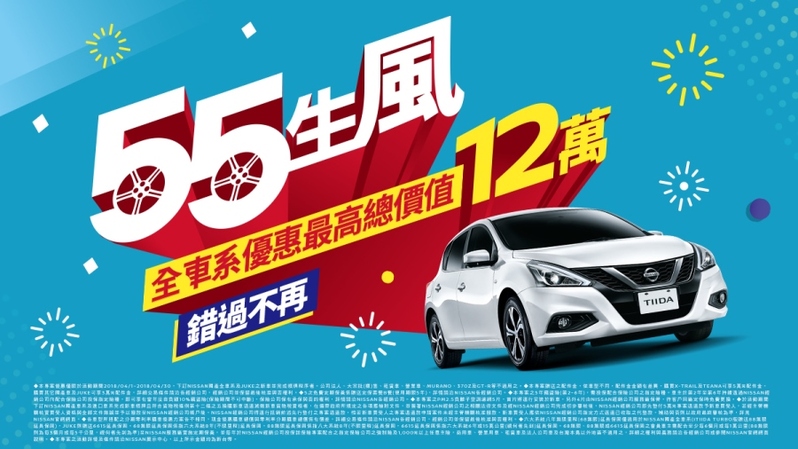 NISSAN「55生風」 購車可享最高總價值12萬元優惠豪禮