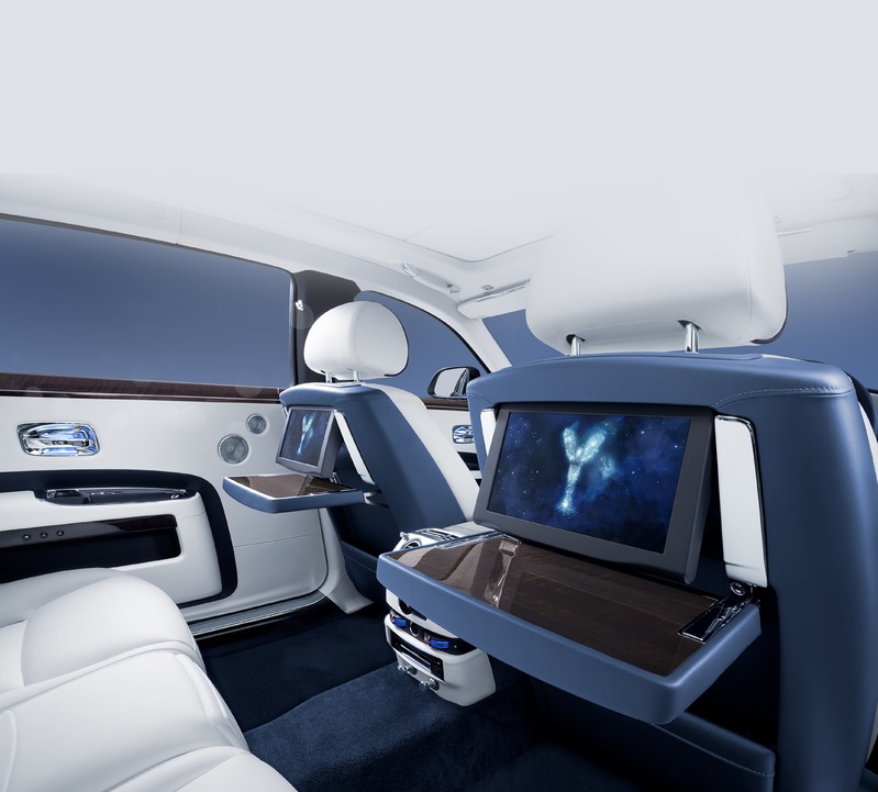 更寧靜的車廂則成為演繹勞斯萊斯最先進多媒體娛樂系統的完美舞台,而全新的功能介面讓車主可以輕易的控制車內所有的功能。新的後座娛樂系統讓前座乘員也能透過全新的使用者介面,透過連線功能同時支援後座乘客使用。最先進的 LED 背光顯示螢幕,並將尺寸提昇至10.2吋,解析度也拉高至1280 x