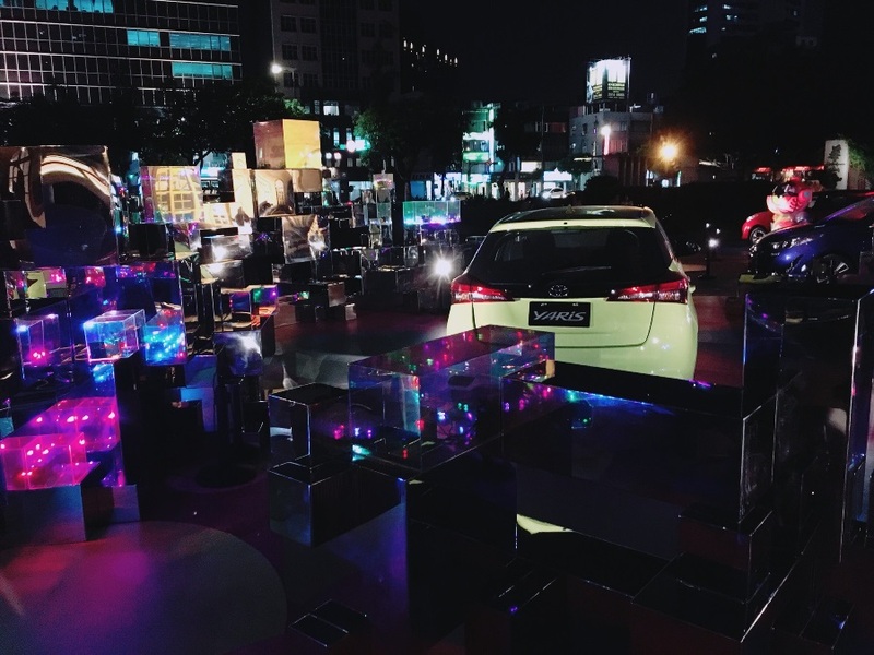 此次外展裝置延伸廣宣主軸「翻玩 無限可能」,希望將YARIS好玩、翻轉生活的概念呈現給大家。整個裝置以大量的鏡面方塊組成,呈現出無限可能的樣貌。現場展示三款車色,搭配彩色方塊的點綴,自不同的角度觀賞呈現的畫面皆不同。現場同步展出賴冠仲與屏東縣政府合作的機器人LUCAS,為整體裝置添增繽紛色彩。