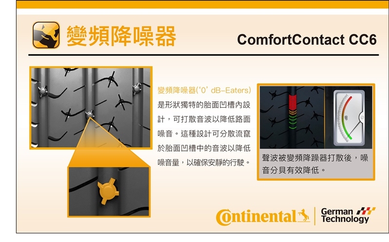 ComfortContact CC6以創新的降噪技術和獨特膠料配方,有效降低噪音並發揮更高里程表現,為車主打造舒適的駕乘體驗。