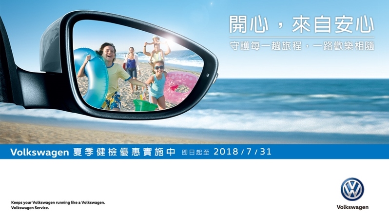 為守護Volkswagen車主行車安全,台灣福斯汽車即日起至07月31日,於全台授權經銷商實施「Volkswagen 夏季健檢專案」,提供冷氣空調系統相關檢查、冷卻系統功能檢查、輪胎胎壓/胎紋等23項之免費安全檢查,且提供多項零配件精品優惠。為回饋廣大Volkswagen車主,亦有針對5年以上車主之專屬「Volkswagen 5+ 精省方案」,提供多項專屬禮遇和機油、工資優惠;而消費6,888元之車主即能參加抽獎,包含Volkswagen主題家庭客房三天兩夜住宿券、或二合一涼風空氣清淨機、原廠精品等200名、總值逾30萬元好禮。台灣福斯汽車誠摯邀請車主及早預約回廠,感受由德國原廠認證團隊以及先進檢修設備所提供全方位專業服務。