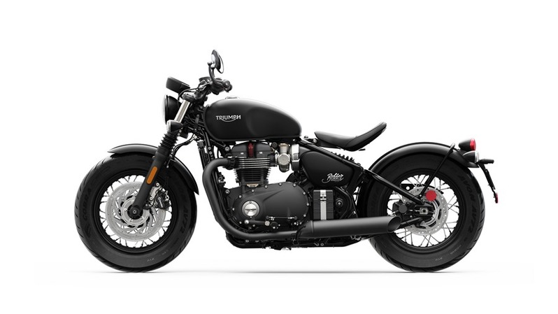 TRIUMPH Bonneville Bobber Black外型風格以經典英倫風更融入美式狂野基因,賦予經典復古手工車獨特風尚,車身採用全黑化塗裝設計,透過多種精緻特殊工法,突顯出美式重機的陽剛氣質,卻能兼具細緻與內斂的風味;輪框與輪胎配置上,前輪直徑由19吋改為16吋,搭配130mm輪胎,散發出濃厚的手工車感,騎乘姿勢設定偏向舒適且隨性,外型性感短翹的單座,將後避震器巧妙隱藏至車架中,如同一體成形般的完美線條,坐墊高度以690mm的低配置,更加符合人體工學的設計,使騎士能在享受速度奔馳之際,同時乘坐時能輕鬆的將雙腳著地。排氣管外觀採用魚雷式造型,完整感受屬於美式風格的率性霸氣,頭燈的設計上配置LED原形頭燈,擁有著重騎乘安全性的日行燈。TRIUMPH Bonneville Bobber Black除了推出高達150款以上的原廠品味改裝套件,全車身烤漆料面更可選擇經典亮面黑或低調消光黑,讓騎士打造屬於個人品味的極致樂趣,更成為街道中最惹人矚目的焦點。