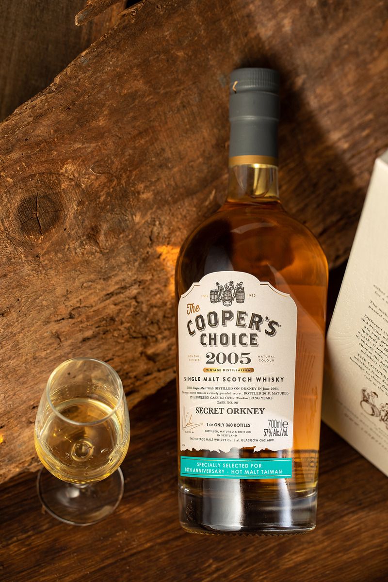 Malt Whisky Co., Ltd.)十分重視台灣市場,本次將旗下最重要的品牌―酷選大師威士忌(The Cooper’s Choice)交給豪邁國際的同時,也特別為台灣獻上全球獨家、台灣限定的單一桶品項。這桶來自奧克尼島(Orkney Island)的神祕酒款,擁有甜美的花香氣息,隨同海風徐徐吹來。入口後豐富的香草與奶油滋味,加上石楠花蜜香,以及熱帶水果的豐富滋味,並在尾韻帶上了一點泥煤煙燻的聯想,令人愛不釋手,佳釀威士忌公司(Vintage Malt Whisky Co., Ltd.)選擇了這桶極具特色又完完全全能代表酷選大師威士忌風格的酒款,獨家獻給台灣市場,可謂誠意深遠,預告了酷選大師將為台灣市場再創一波威士忌風潮。