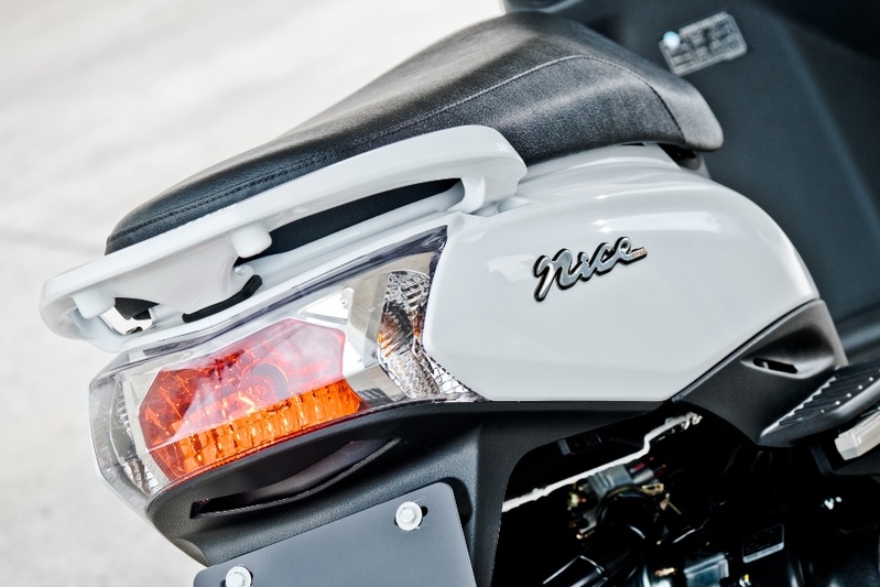 輕量級小車Nice 100有高張力輕量化的全新車架,讓全車僅重94kg,為同級車中最輕巧,女性騎士可以更輕鬆優雅地駕馭,在擁擠的市區中可以輕鬆駐車、移車。新車架除了提供優越的騎乘設定,也提升了各種空間的應用:Nice 100配置同級車最大6.7L油箱容量,每加一次油都可以騎得很久;小車大空間,其擁有同級車最大24L置物箱空間,還可同時收納兩頂安全帽;前置腳空間踏板更拓寬至320mm,讓 騎士享受便利實用,同時滿足貼近實際的生活需求。