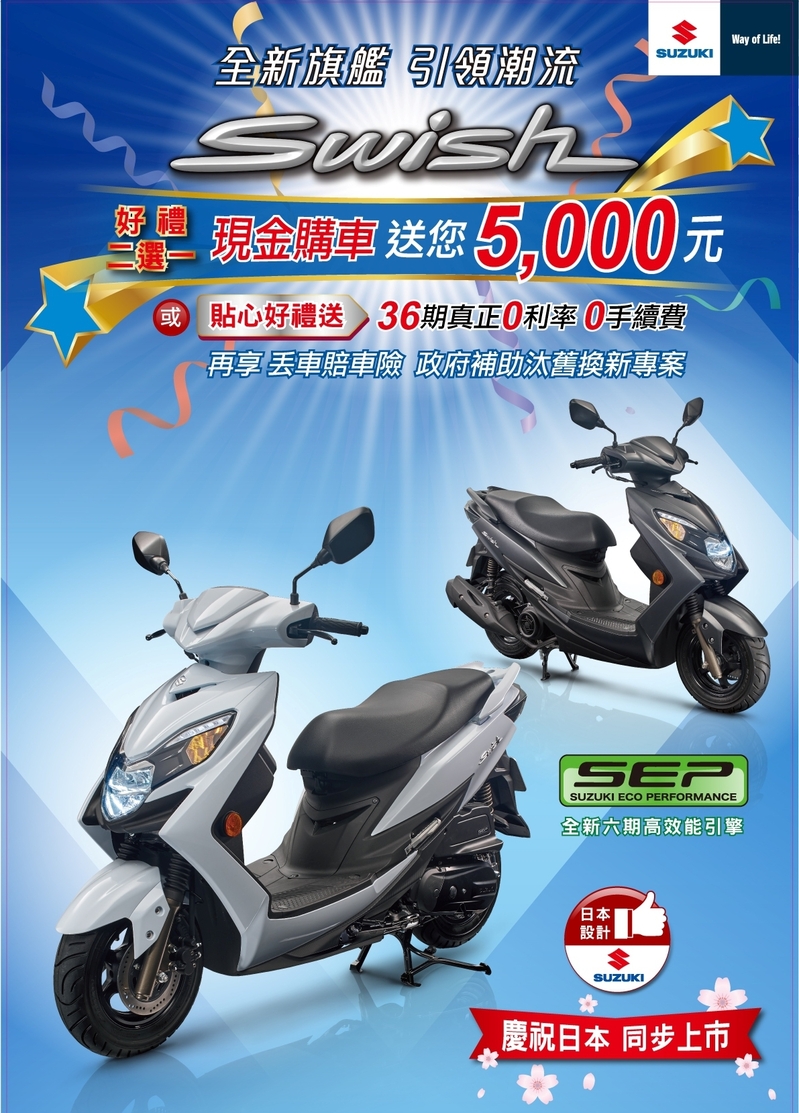Swish 125 無限魅力 極致進化 購車現金補助5000元 好禮大方送