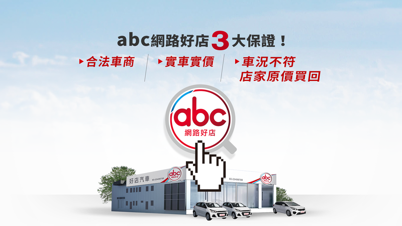 榮獲2017年媒體市調*1中古車平台信賴度第一名的abc好車網,成立以來屢屢突破市場現況,除了提供透明車價及里程查詢服務、主動下架不實低價車,在短短半年內abc好車網瀏覽量達3,000萬次,現在更推出全新的「abc網路好店」、「abc百大平輸好店」服務,以第三方平台角度承諾消費者購車前把關優質車源、車商,購車後若車況不符,好店車商將原價買回的保證,有助於降低民眾在網路購中古車的擔憂,致力打造消費者選購中古車安心的Online to Offline服務體驗。