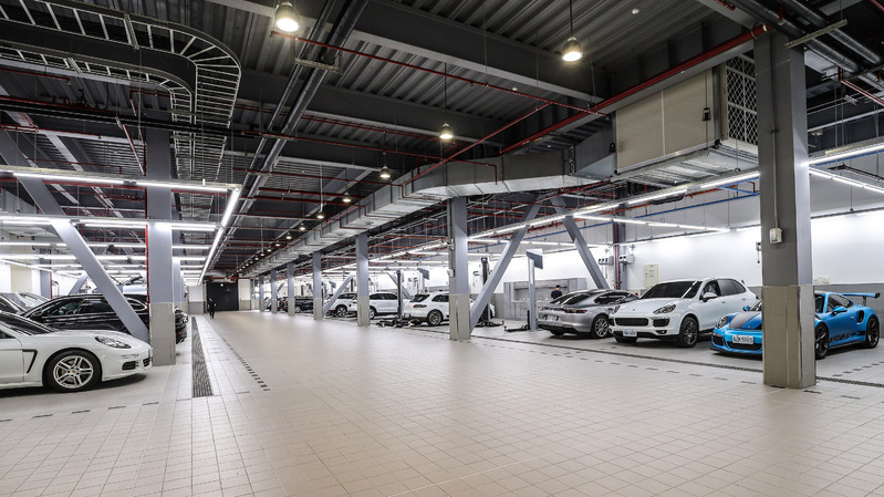 此外採用全區中央空調設計的服務廠區內部,總共設置20個引電工作位(附12部專業級頂高機的一般作業工作位、精密診斷工作位、定位工作位、高電壓車輛工作位、車輛廢氣排放設備和全系統不銹鋼工作櫃位)、2個車輛美容區,以及全功能診斷區(配置3部全新平台式頂高機、原廠指定煞車試驗器、頭燈校正器、懸吊檢測設備),為每一部進廠車輛提供即時而全面的詳細檢查。先進的軟硬體設備除了大幅提升整體工作效率,透過一體化的服務流程,保時捷高雄展示暨服務中心亦能同步為顧客完成維修保養、車身鈑噴烤漆和專業汽車美容等作業,未來將為南台灣地區的廣大車主們,提供更強大的維修能量和服務品質。