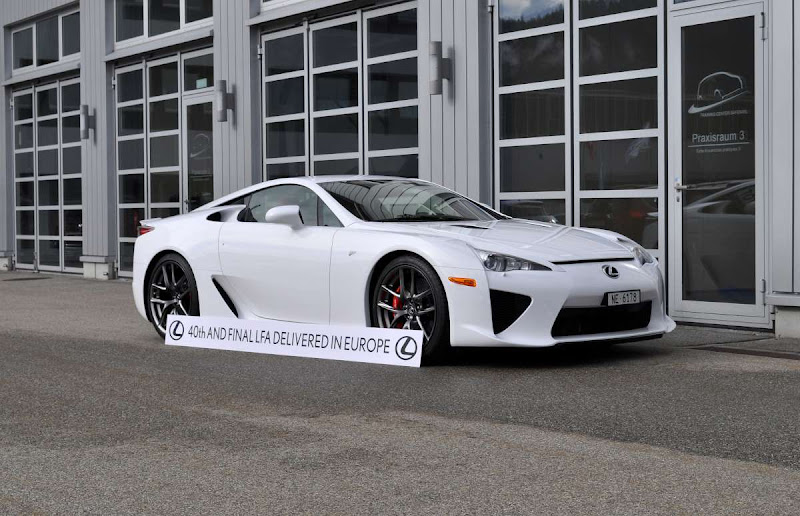 在歐洲總共有40部Lexus LFA,根據統計,其中15輛在德國、6輛在瑞士、5輛在英國、4輛在荷蘭與3輛在法國,另外7輛則不詳。值得一提的是,銷往歐洲的Lexus LFA之中,有4台配有稀有的紐柏林套件(Nürburgring Package),與一般版本的不同,顯然這最後一台白色的LFA是一般版本。誠然,如同那塊版子上寫的: " 40th and final ",這是歐洲第40台Lexus LFA,也是最後一台LFA。