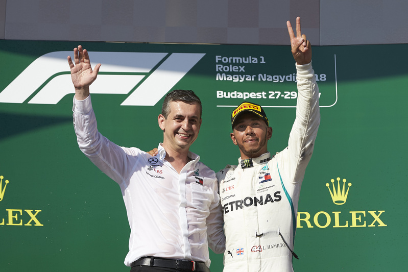不到一週的休息,2018年F1賽事第12站來到了匈牙利站,為了讓暑假前的最後一站可以帶著微笑離開賽場,各車隊可是卯足了勁全力拚鬥,但毫無疑問的,最終贏家絕對是屬於銀箭車隊的!雖然週六排位賽受到大雨影響打亂所有賽事與車隊節奏,但Mercedes-AMG Petronas Motorsport憑藉著精準的策略分析與穩健的表現,讓Lewis Hamilton與隊友Valtteri Bottas獲得頭排出發席次以外,週日正賽Lewis Hamilton更一路領跑,再次以Pole to Win的姿態奪得冠軍,一舉讓自己與車隊於積分排行榜上拉大差距進入暑休階段,以最佳姿態迎接今年賽事下半段的到來。