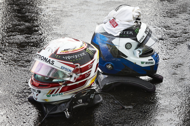 上週六進行的排位賽,受到大雨的影響,讓許多車隊在輪胎的選擇相當掙扎,其中最佳苦主莫過於是Red Bull Racing車隊的Dainel Ricciardo,僅能止步於第二階段,正賽將從第12位開始起跑。而在排位賽的前兩階段,Scuderia Ferrari車隊的Sebastian Vettel表現最為搶眼,但當排位賽進入第三階段,場上的雨勢不斷,眾家車手全數換成藍色雨胎上場,為了避免後續雨勢更大,各車手紛紛把握時間積極出擊,其中仍以Mercedes-AMG Petronas Motorsport兩位車手表現最為出色,Lewis Hamilton輕鬆以1:35.658的單圈成績奪得桿位,而隊友Valtteri Bottas則以1:35.918居次。至於躍馬車隊則無法延續前兩階段的表現, Kimi Räikkönen與Sebastian Vettel分別奪得第二排的出發位置,也讓隔日正賽的起跑戲碼,格外引人注目。