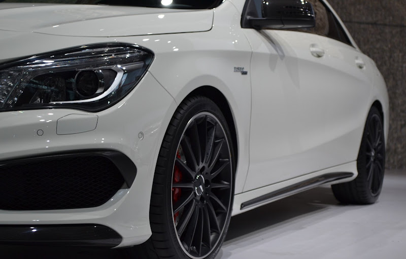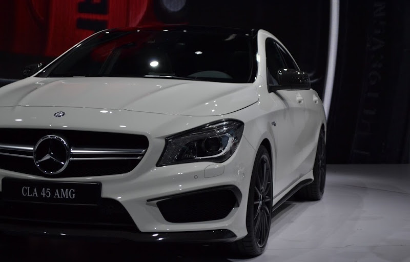 2013紐約車展,Mercedes-Benz帶著旗下全新級距的CLA 45 AMG向世人見面,這台美型的四門coupe跑車,在經過AMG畫龍點睛的修改後,比起原來像個文質彬彬的紳士,搖身一變為霸氣十足的領袖,車身上的空力套件與AMG專屬四出尾管,彷彿在告訴人們我不是好惹的。CLA 45 AMG與A 45 AMG使用了同一顆動力心臟,2.0升四缸渦輪增壓引擎可以提供360PS的最大馬力及45.91kgm的最大扭力,動力數據完完全全的超乎人們對市售2.0升引擎的認知,這數據若說是3.0升引擎相信也沒人會質疑,更何況這只是具2.0升引擎,0~100km/h只需4.6秒,已經逼近超跑等級,讓人不得不佩服AMG的實力。