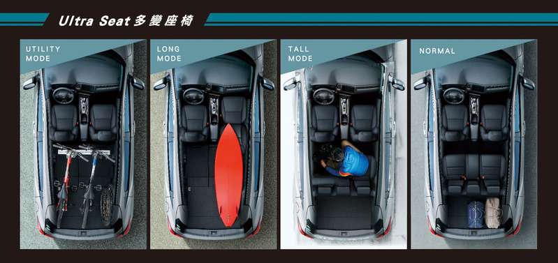 Honda HR-V採用中置油箱設計,讓行李廂底板高度可以降低,實現座椅的豐富機能變化;Honda獨步車壇的ULTRA SEAT多變座椅,實現超乎想像的空間變化,可使其成為對應不同需求、成為日常最佳的生活夥伴。