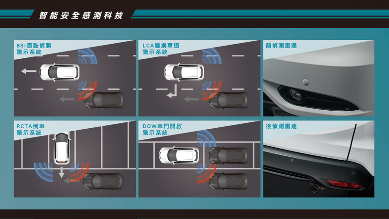 本次更加值不加價、限時推出「HR-V 安全躍進版」,加碼搭載「智能安全感測科技」,此系統整合了「前偵測雷達」、「後偵測雷達」、「BSI盲點偵測警示系統」、「LCA變換車道警示系統」、「RCTA倒車警示系統」、「DOW車門開啟警示系統」等高規格安全防護功能,當駕駛專注於路況而忽略左右側來車時、或系統偵測到後方盲點處車輛時,A柱上方便會亮燈提醒駕駛,以消除日常行車視線上的潛在風險。 Honda HR-V以全方位的主、被動安全,締造傲視同級的至高安全標準。