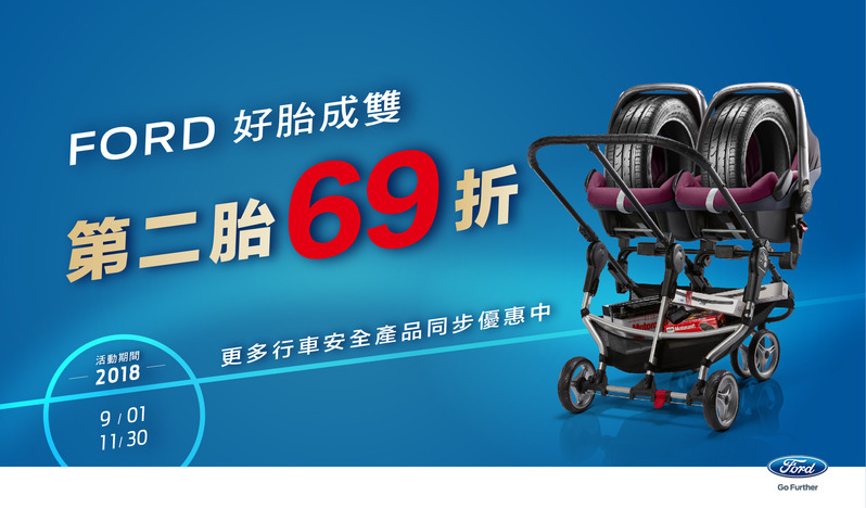入秋後舒適的氣溫更加適合開車長途旅行或上山露營,然而鋒面偶爾帶來綿綿細雨,駕駛者需隨時注意路況,並於行前確認胎況。Ford專業服務廠貼心提醒,輪胎不僅影響油耗表現和乘坐舒適性,更與操控時的抓地力及排水性息息相關。為讓車主安心地享受用車生活,即日起至2018年11月30止,Ford專業服務廠推出「好胎成雙」優惠活動,期間購買原廠輪胎即享第二條6.9折優惠,多項零件亦同步享折扣優惠。