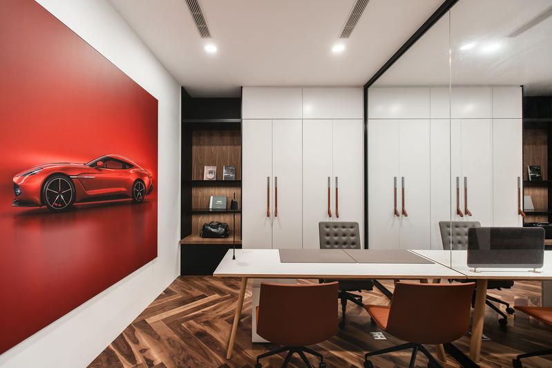 ASTON MARTIN一直以來秉持對「美」的極致追求,不僅反映在旗下各個車系,亦投射於展示中心之空間設計。高雄展示中心採用全新品牌視覺,每個角落皆以原廠規格量身打造,來店貴賓不需出國,就可感受到純正英倫風格。以溫暖舒適的木質調為基底,空間大量使用木元素,並搭配暖色系溫潤柔光,嶄新設計跳脫以往奢華汽車品牌給人的冰冷距離感。除此之外,展示中心正門採用大面積玻璃落地窗,巧妙利用南台灣向陽風情,大量自然光照進展車空間,整體更顯明亮愜意。