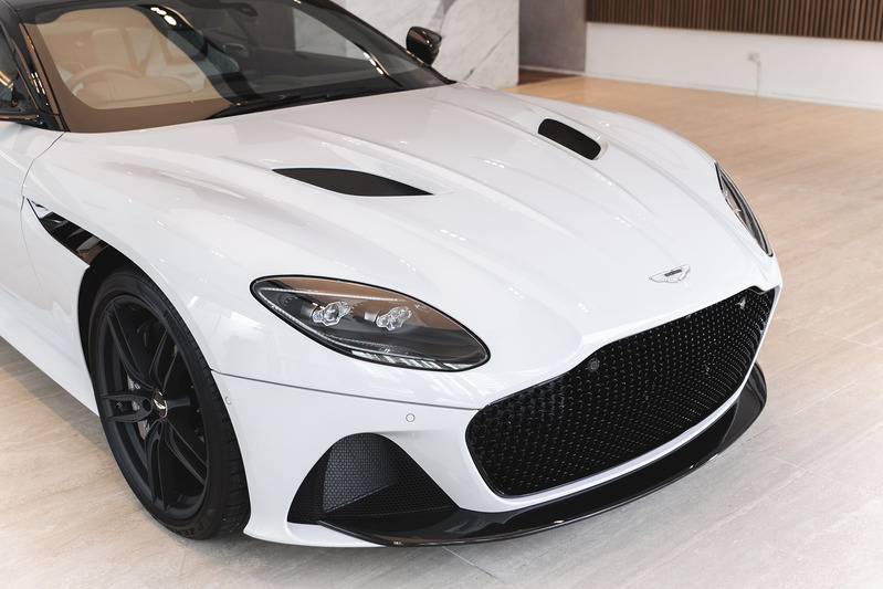 外觀極具感官衝擊力的DBS Superleggera,獨特的六角形蜂窩狀水箱護罩是攫抓觀眾視線的吸睛焦點。六角形結構設計層次感十足,除了讓視覺呈現更為立體外,也擁有優秀的幾何性能,在穩固結構的同時亦可獲得更大受面,使前隔柵通過大量氣體,有助於高速行駛的穩定性。DBS Superleggera採用5.2升V12渦輪增壓引擎,安裝於引擎室中盡可能靠後且較低的位置,呈現完美前後車身均衡重量分配,輸出最大馬力725PS及扭力900NM,並擁有0-100公里加速3.4秒的驚人狂暴性能,最高速度可達340KM/HR,DBS Superleggra的超強運動特性還受益於後置的ZF八速自動變速箱之獨特調校,搭配機械限滑差速器及向量扭力分配系統,讓駕駛者在面對如此強勁的動力設定時,仍能保有ASTON MARTIN車款特有的優雅從容,享受靈活自如的操駕樂趣。另採用最新減震技術及完美空氣力學設計,包括來自F1之雙層車尾擴散器,可以產生大於180公斤的下壓力,是目前用於道路使用GT跑車中的佼佼者,讓車身在強大動能的催使下,還能擁有絕佳的穩定舒適駕馭體驗。