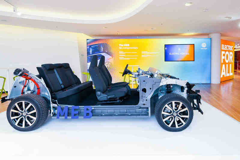 繼擁有5,500萬輛採用第一代MQB模組化底盤的成功之後,Volkswagen於2016年初發表MEB模組化矩陣底盤科技,隨後在巴黎車展中推出一系列ID.電動概念車,讓I.D. Buzz、I.D. Crozz、I.D. Vizzion等電動概念車款相繼曝光,如今隨著MEB模組化矩陣底盤正式亮相,也代表首款ID.電動車型即將進入量產階段,透過ELECTRIC FOR ALL的品牌發展宣言,預告Volkswagen全民電動車的時代即將到來;Volkswagen計畫未來透過一系列ID.電動車款,讓全球消費者都能合理擁有一輛電動車,並且計畫於2020年將ID.與ID. SUV兩款車型大規模量產及上市,屆時Volkswagen電動車的年銷售將達15萬輛以上,其中10萬輛是首款ID.電動車,到2025年更超過100萬輛,寫下百年汽車發展歷史的新頁。