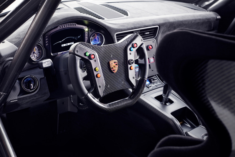 駕駛艙內部也運用同樣設計理念:車內排檔頭以層壓木材打造以紀念傳奇車款如917, 909 Bergspyder及Carrera GT超跑。碳纖維方向盤及其後的彩色螢幕儀錶板則取自2019年推出的 911 GT3 R車款。大型的防滾籠結合賽車桶型座椅以及六點式賽車安全帶以確保最佳安全性。副駕駛座可列為額外的選配項目。空調則能提供內部最理想的空氣循環品質。
