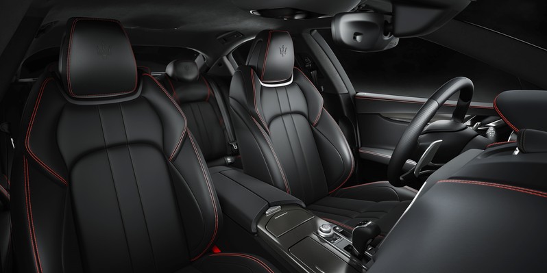 Ghibli S Q4 GranSport Nerissimo Edition搭載由Ferrari調校的3.0升V6 雙渦輪增壓引擎,430hp / 580Nm的動力輸出輔以ZF-8速手自排變速箱,0-100km/h只需要4.7秒。而原本就已極具跑格的GranSport車身套件,披上更具侵略性的「Nerissimo」塗裝,舉凡經典的直瀑式水箱欄柵、前保桿下擾流板、後視鏡及窗框飾條都覆蓋湛黑色澤;登上駕駛座,黑色經典皮革內裝搭配紅色對比車縫線、雅致的經典深色內裝飾板與黑色頂篷,營造出令人沉醉的獨特氛圍。當Maserati經典聲浪自後方湧向耳邊之際,透過銳利的燻黑LED頭燈及湛黑20吋Urano合金輪圈,Ghibli S Q4 GranSport Nerissimo Edition將以內斂卻又張狂的狩獵氣息,征服世人目光。