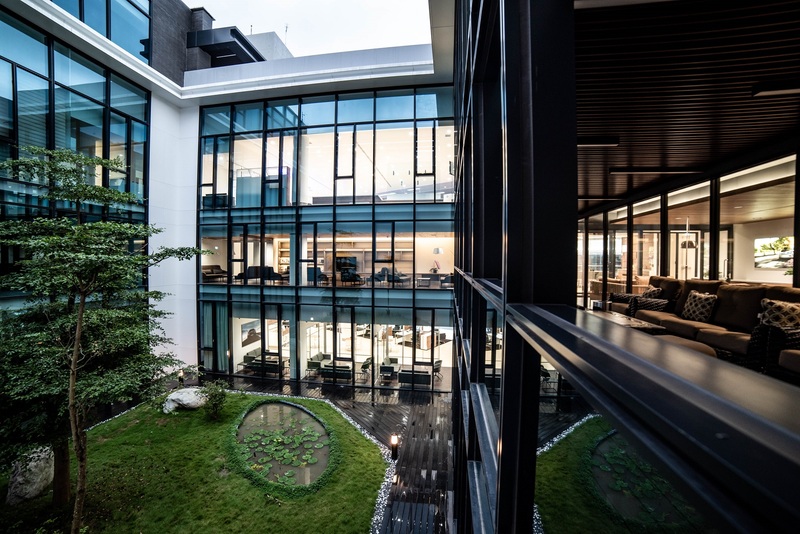 Bar點心吧台以及多處友善親子空間,例如兒童遊戲區、育嬰室、親子廁所等。位於展示中心中央的獨立天井,以內斂的庭院造景,打造充滿芬多精的綠意空間,呈現舒適無壓力的氛圍。一旁的VIP新車交車中心更擁有如五星級飯店總統套房般的空間,提供新車車主隱密且尊榮的交車體驗。除了貼心的硬體空間設計外,更有通過原廠認證的專業服務團隊,提供專業的諮詢與維修服務。「BMW台北尚德新莊5S全功能旗艦展示暨服務中心」訂定了領先業界的服務標竿。