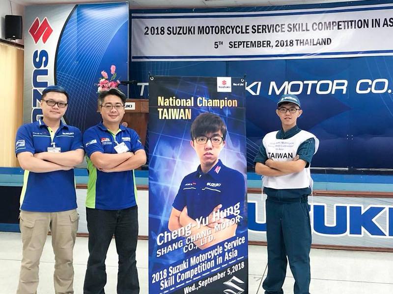 本次競賽共有11個國家參與,而每位選手都是該國的冠軍,參加在泰國進行的SUZUKI亞洲服務技術競賽,在激烈的競爭下,除了一般零件的故障檢測排除外,也必須進行成車問題檢測、排除、故障修復,代表台灣SUZUKI參與此國際競賽的授權經銷商尚昌重車的洪誠郁選手,奪得第三名的佳績,實屬不易。洪誠郁選手說到:「非常榮幸能夠代表台鈴SUZUKI參與此國際比賽,在這過程中,無論對我的技術力提昇或是對產品的進階理解,都極有助益,感謝SUZUKI給我這個機會,並期待在未來能回饋給消費者並希望自己能透過這過程不斷的精進。」
