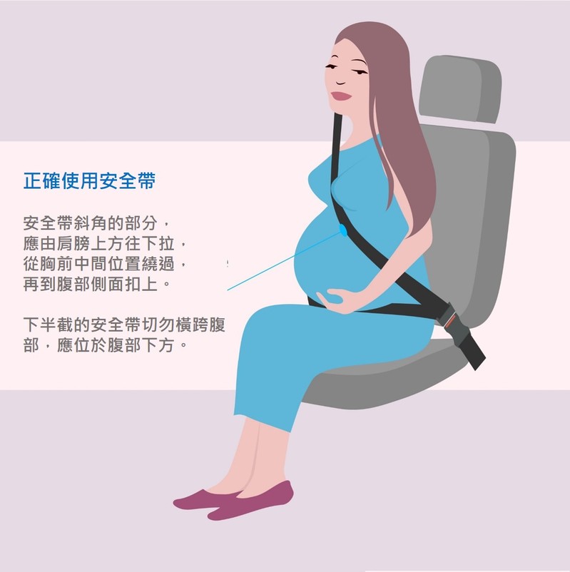 此外,對於準媽媽而言,後排中間的座椅是最安全的位置。若需要乘坐在前座上,盡可能地將座椅往後調整,當意外發生且安全氣囊作動時,才能保護腹部。