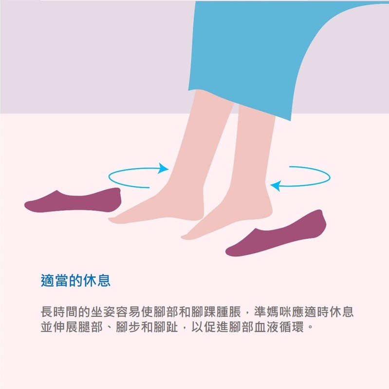 孕婦的大腦所承受的壓力較一般人來的更多,建議在行前先確認好行程,盡可能避免長途跋涉。長時間的坐姿容易使腳部和腳踝腫脹,因此應適時停車休息並伸展腿部、腳步和腳趾,以促進腳部血液循環。