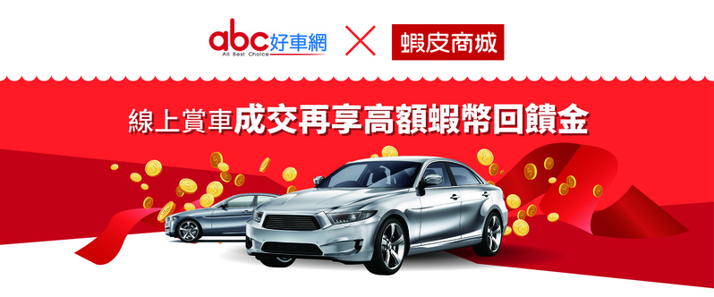 ★abc好車網x蝦皮商城 線上賞車活動詳情:https://www.abccar.com.tw/campaign/abc_shopee