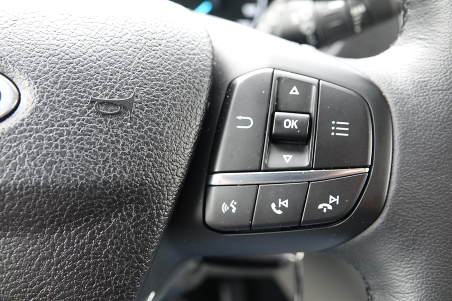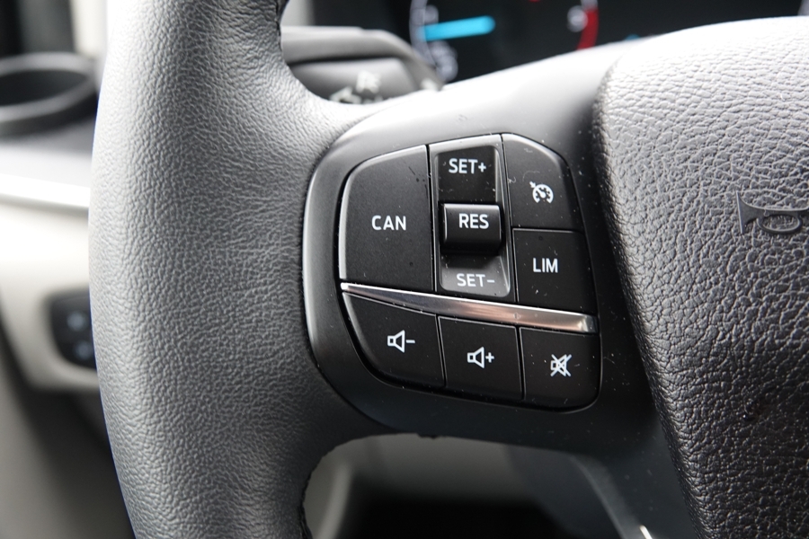 方向盤左側控鍵為定速裝置及限速按鍵,還有音量調整,右側為行車資訊旅程電腦控鍵及語音免持電話控鍵。