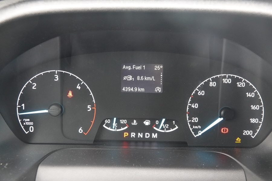儀表是雙環式左轉速右時速的配置,中央有小液晶螢幕顯示行車資訊,方向盤可以做前後上下的四向調整,方向盤的直徑比一般車型稍大一些。