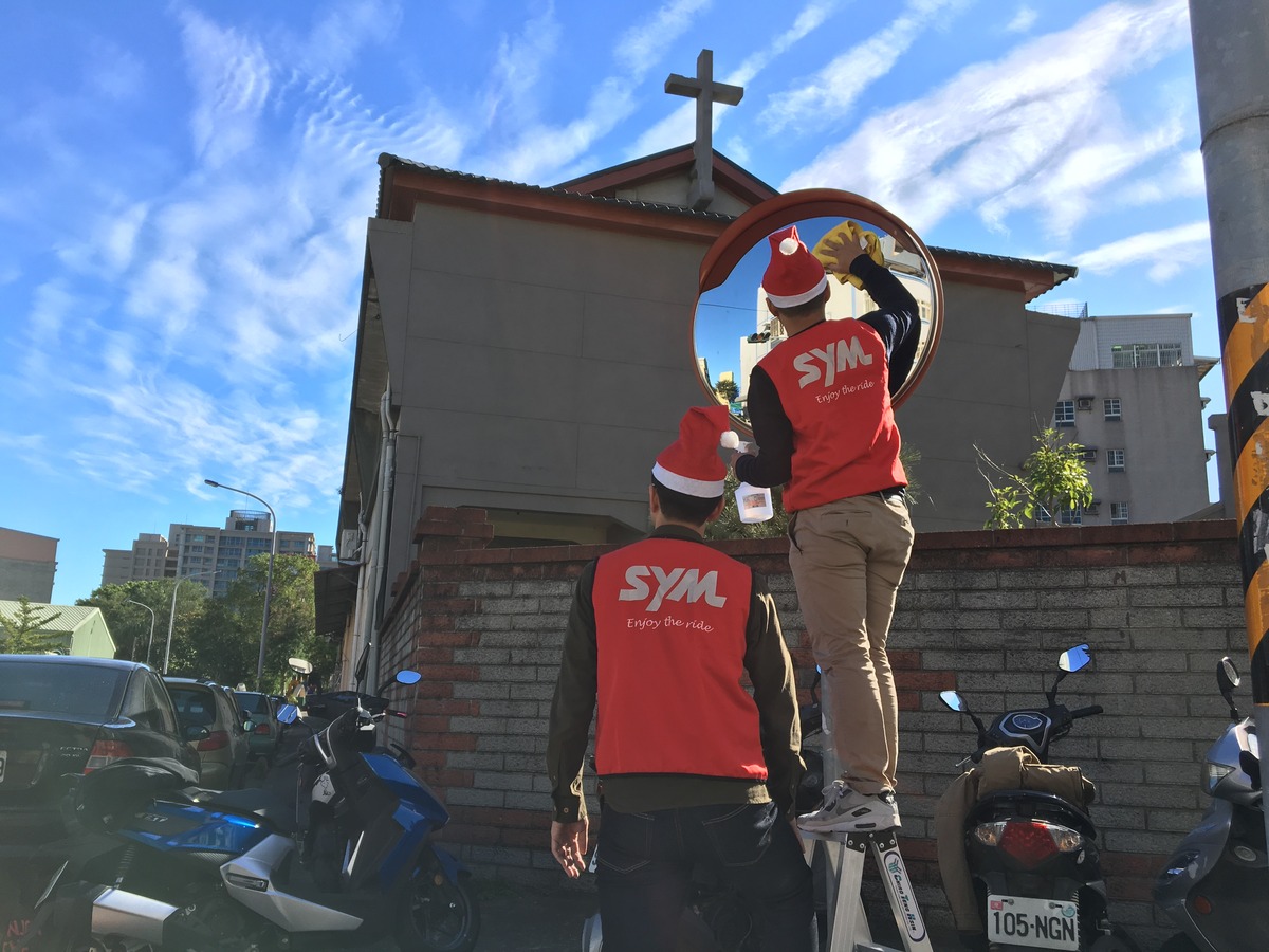 距離聖誕節越來越近,許多聖誕節活動及教會已經陸陸續續開始佈置,裝飾應景的聖誕燈飾,營造節慶溫馨氛圍,成為民眾慶祝打卡的熱門景點,三陽工業特地於聖誕節前舉辦「聖誕報佳音,馬路路鏡亮晶晶活動」,12月15日派出50位SYM志工到新竹地區教堂及教堂周邊沿路擦拭553面反光鏡,還專程出動聖誕老人加入擦反光鏡行列,讓外出歡度聖誕節的民眾有更安全的道路環境。