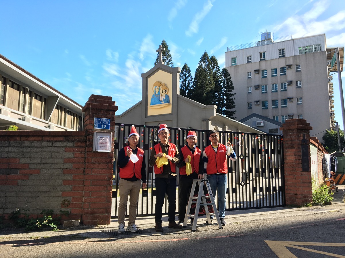 文衛雅神父來台灣一年五個月,已經說得一口好中文,向志工介紹教堂聖誕節馬槽佈置,教友鄭盛文提到「教堂在交通大學附近,周邊以前也是傳統眷村,許多退休長輩及交大教授都會到教堂望彌撒,有明亮的反光鏡可以讓社區道路更加安全,也歡迎各地民眾到教堂參觀。」