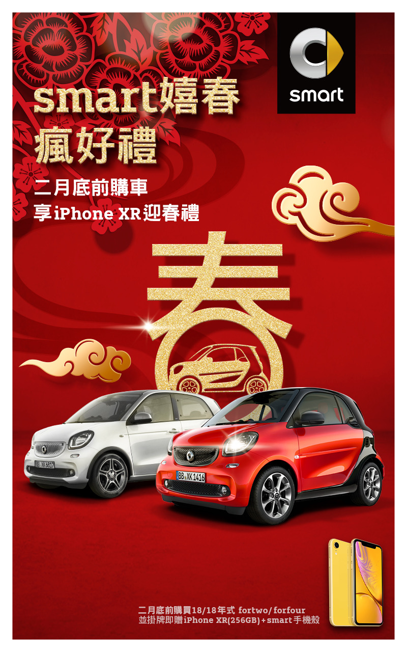 除了持續smart 18/18年式購車贈送當紅手機Apple iPhone XR外,也邀請smart幸運新車主前進『2019 魔力紅高雄演唱會』當打卡VIP!即日起至2月底入手18/18年式smart全車系新車完成交車領牌,即可輕鬆帶走Apple iPhone XR(256GB) 及smart專屬酷炫手機殼,iPhone 6色任你選,總價值超過新台幣34,000元!還可享「50萬50期零利率+首期免付」方案優惠,並且加碼開工好禮, 針對 2月11日 至 2月25日(含)前5名完成交車領牌 smart全車系新車(限18/18年式)客戶,提供一組演唱會門票組,每組含兩張門票,可於2019年3月1日現場搖滾區一同感受美國流行天團Maroon 5魔力紅的魅力,本活動由Mercedes-Benz與smart攜手 Live Nation 理想國演藝冠名贊助,兩張門票總價值超過新台幣$10,000,憑台灣賓士貴賓邀請函及門票還可於演唱會開始前至高雄國家體育場外之「Mercedes-Benz星光酒吧」享用精緻點心和飲品。即刻入主smart,就有機會以VIP身份現場親臨感受魔力紅火熱搖滾魅力!