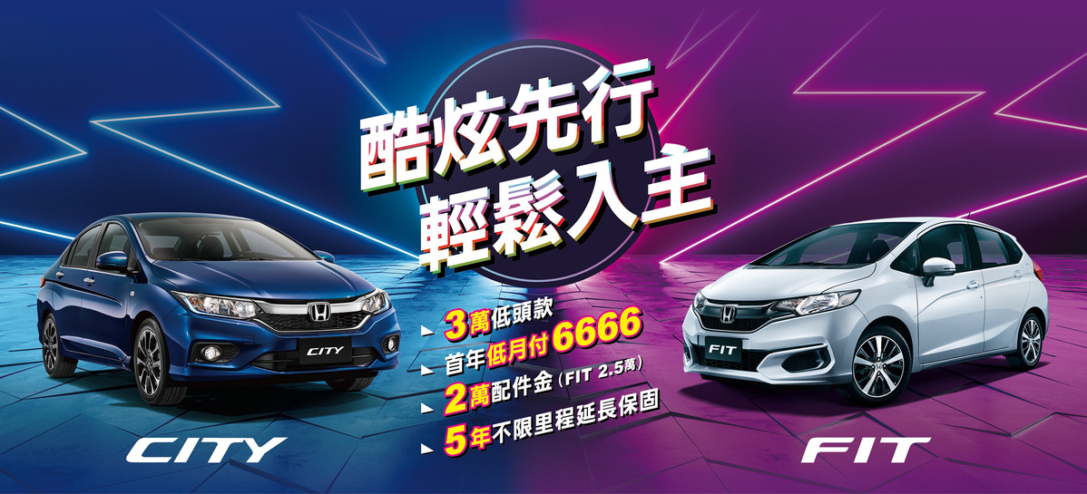 本月入主Honda FIT,可免費享有「3萬低頭款」、「首年低月付6,666元」、「2.5萬配件金」及「5年不限里程延長保固」。