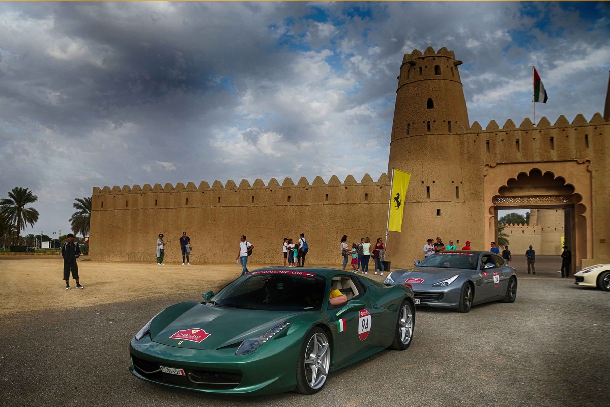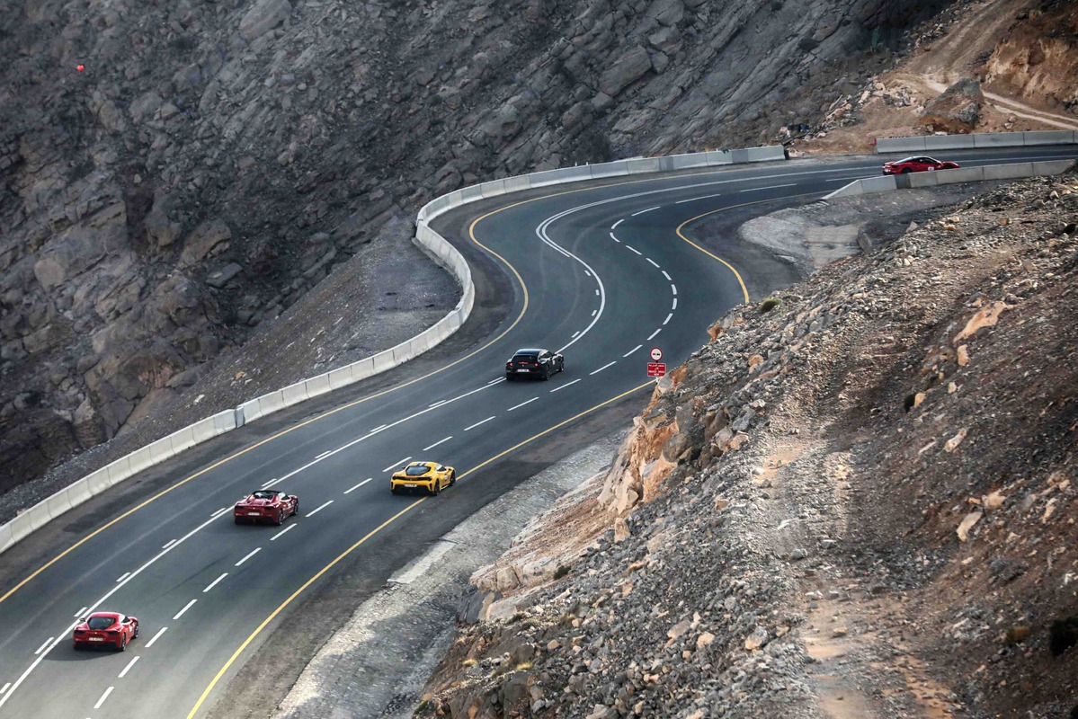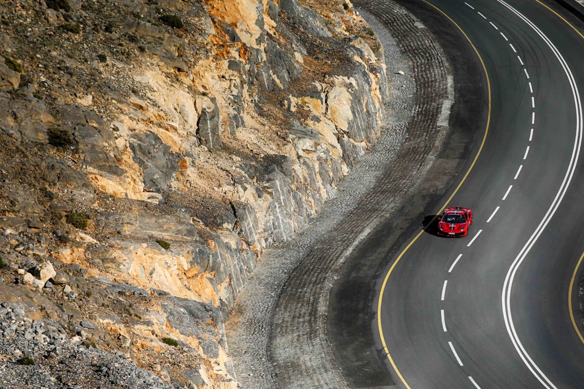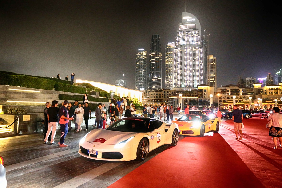 為期三天的盛會,全程共約1,200公里,造訪阿拉伯聯合大公國境內多處風景勝地。從杜拜出發,車隊沿著風景壯闊的沙漠公路飛馳,穿越Jebel Jais Mountain哈伊斯山著名的髮夾彎,最後車隊停留在著名的Burj Khalifa哈里發塔下一字排開,為了慶祝這場盛會,這座世界第一高樓更閃耀著代表Ferrari法拉利熱情的紅色光芒。