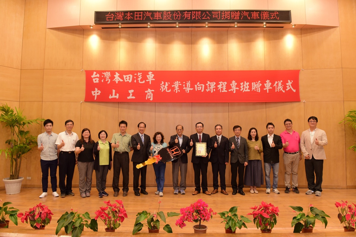 本計劃於3月由「台灣本田汽車」-總經理 万年博之為Honda代表,假中山工商校內講堂,將車鑰匙贈與「中山工商」代表-董事長 陳國清、校長 林昭億,並合種一株茶花,圓滿完成車輛捐贈儀式。
