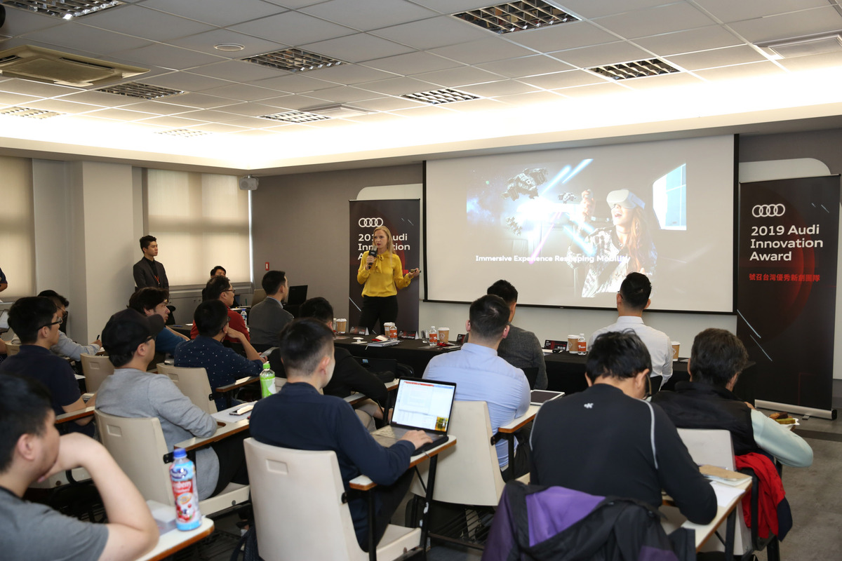 Audi秉持數位化,城市化及永續發展三大核心價值,尋找符合企業品牌策略的解決方案,為幫助新創團隊更加了解今年Audi Innovation Award所尋找的應用科技領域,台灣奧迪數位事業暨通路發展部經理Angela Leibinger以今年2019 CES首度發表的Audi 沉浸式車內娛樂體驗(Audi Immersive In-Car Entertainment)為例,透過串聯車輛即時動態及VR虛擬實境,Audi將娛樂體驗延伸至車內空間,帶給乘客嶄新的移動體驗;而Zipcar董事長彭仕邦及Mesh Ventures董事總經理喬國筌則藉由成功經驗及創投趨勢分析,分享目前國際市場的動態走向。