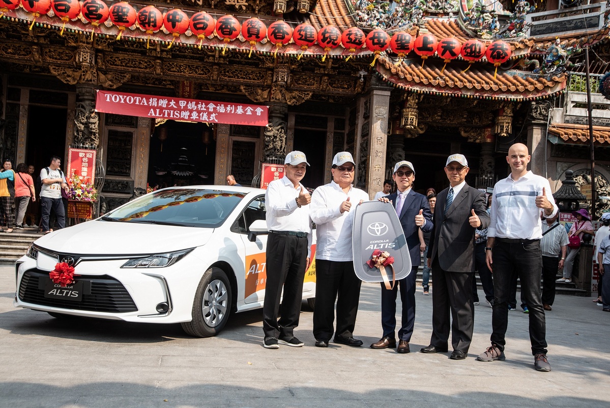 贈車儀式在3月28日於大甲鎮瀾宮前廣場舉行,由和泰汽車TOYOTA營業本部長劉傳宏代表捐贈,財團法人大甲鎮瀾宮顏清標董事長、鄭銘坤副董事長與會表達感謝之意。