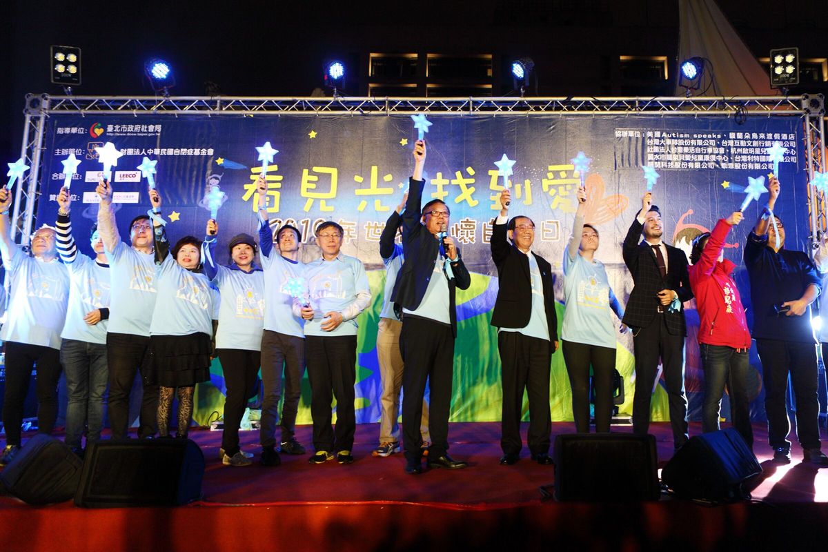 4月2日晚上,中華民國自閉症基金會在臺北市民廣場舉辦「看見光,找到愛」點亮藍燈社會公益活動。為響應聯合國的呼籲,總統府、信義商圈、禮客OUTLET外牆,與全球重要地標串聯同步點亮藍燈,臺北101大樓也以跑馬燈形式共同響應402世界關懷自閉症日。