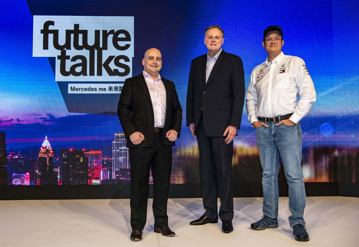 台灣賓士遵循戴姆勒全球發展策略「C.A.S.E.」概念,以【Mercedes me future talks 未來論壇】開啟產業新思維,三位前瞻意見領袖-台灣賓士總裁高明漢 (Mr. Michael Grewe),攜手戴姆勒集團數位轉型長潘賞世 (Mr. Sascha Pallenberg)、台灣賓士轎車行銷業務處副總裁何睿思(Mr. Markus Henne),匯集產業前瞻視野,以互動式座談分享未來汽車產業發展與轉型的關鍵,突破傳統汽車製造商的思維框架,帶領來賓探索未來科技將如何影響人類移動,結合聯網科技、智能駕馭、共享與服務,以及電能驅動,完美編織Mercedes-Benz 心目中的未來藍圖。