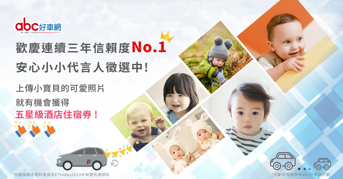abc好車網持續嚴格把關站上車輛,連小朋友都能輕鬆挑車,怎麼挑都安心!即日起只要上傳家中小寶貝的照片,就有機會獲得免費住宿券!活動詳情請參考abc好車網官網:https://www.abccar.com.tw/