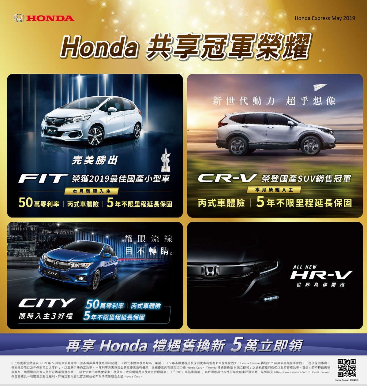 Honda Taiwan為了歡慶Honda FIT九度奪冠,與廣大消費者共享冠軍榮耀,本月入主下列指定車款同步享有多重獻禮。
