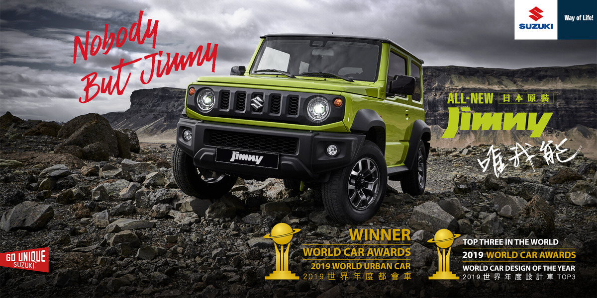 2018年新世代SUZUKI Jimny甫一上市,立刻引發全球車迷的熱烈討論,甚至一車難求!更在世界年度風雲車(World Car of the Year)一舉拿下「2019世界年度都會車」、「2019世界年度設計車TOP 3 」雙料大獎,備受各界肯定。台灣車迷引頸期盼,現在終於可以近距離欣賞ALL NEW Jimny不容小覷的越野魅力!
