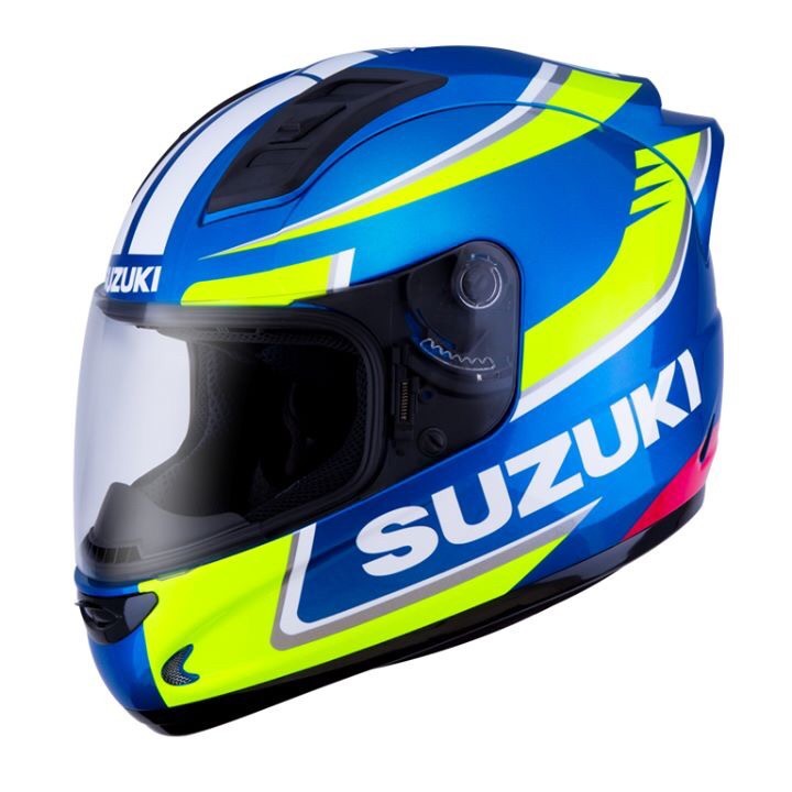 台鈴SUZUKI開發並取得日本SUZUKI原廠與ECSTAR授權的DOT安全規格彩繪安全帽,其彩繪不僅融合了MotoGP廠車元素,更呈現世界獨一無二的風格,騎上小阿魯GSX-R/S150,穿戴接單限量生產的TEAM SUZUKI ECSTAR MOTOGP安全帽,讓您成為道路焦點。接單生產限量價格:4,800元。