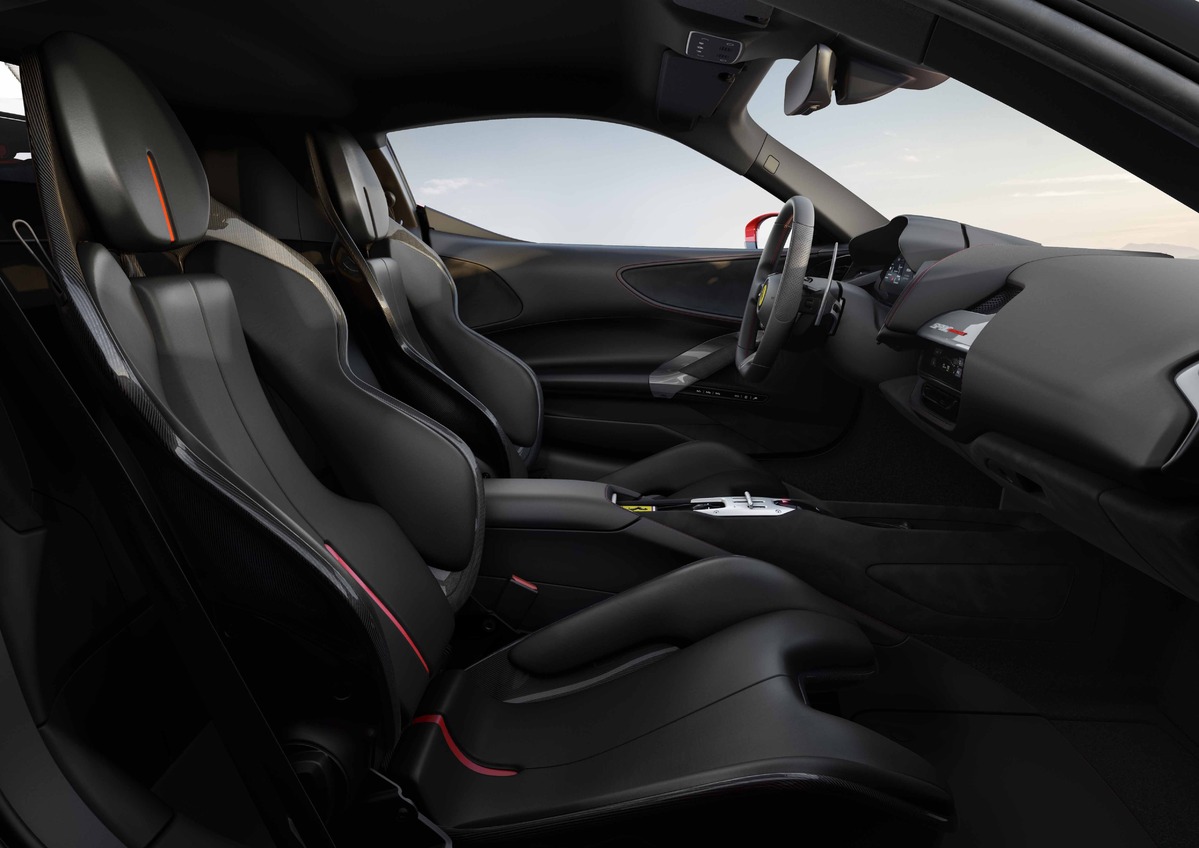 這是Ferrari法拉利首次在中央儀錶組中使用向駕駛者一側傾斜的16英寸數位高清螢幕,便於駕駛員查看,並採用F1風格的環繞式座艙。這是此類螢幕首次被用於Ferrari法拉利的量產車型。