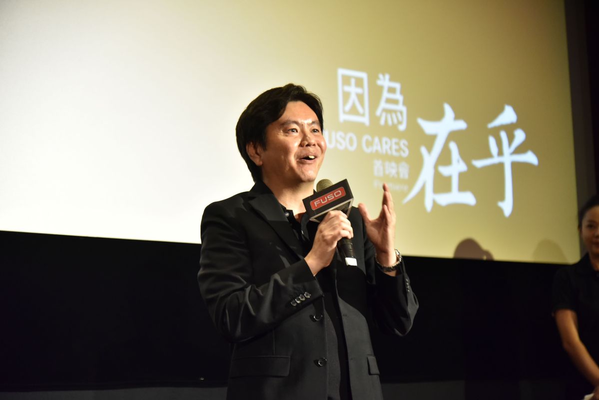 談到今年形象廣告「FUSO CARES因為在乎」創作理念,王立山執行長解釋,每個人因為在乎責任、在乎家庭、在乎彼此,都是因為這份在乎,讓自己不斷變得更好,也感動人心;而FUSO也有一群來自他們來自中華汽車,裕益汽車,順益車輛及順益汽車的伙伴,因為在乎品質,才能陪伴客戶不斷地向前邁進,也藉此彰顯這群無名英雄的默默付出。為呈現廣告真實面,首映會並邀請導演徐元仲先生及參與演出的FUSO車主三星鄉蔥農張浩增村長來分享拍攝和演出的心得。同時今年的廣告也特別請到新一代創作歌手柔米Zoomie創作及演唱廣告歌曲,首映會當日柔米也親臨現場為所有與會貴賓演唱這首新廣告曲,透過柔米動人的現場演唱,讓人深刻感受每一位FUSO HERO雖然微小,卻因為在乎而更加強大的堅持精神。當日影廳外還展示了FUSO行動服務車和影片中所有FUSO HERO的故事,吸引在場民眾拍照打卡。
