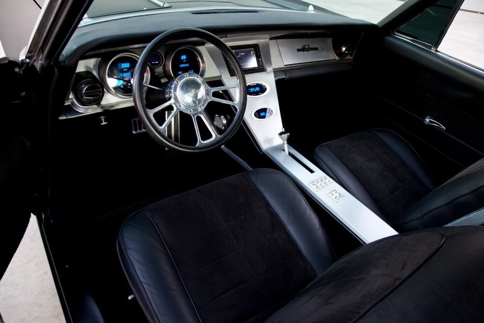 內裝的部份則完全性的呈現一種視覺性衝擊,皮椅維持復古的設定,甚至帶上麂皮的防滑設定,中控台卻是用鋁質來布局,深具未來感,就像是電影Back To The Future中的車輛一般,帶有一種時代交錯的衝突感,打開後車廂他還揹著3,000瓦大功力輸出的音響系統。