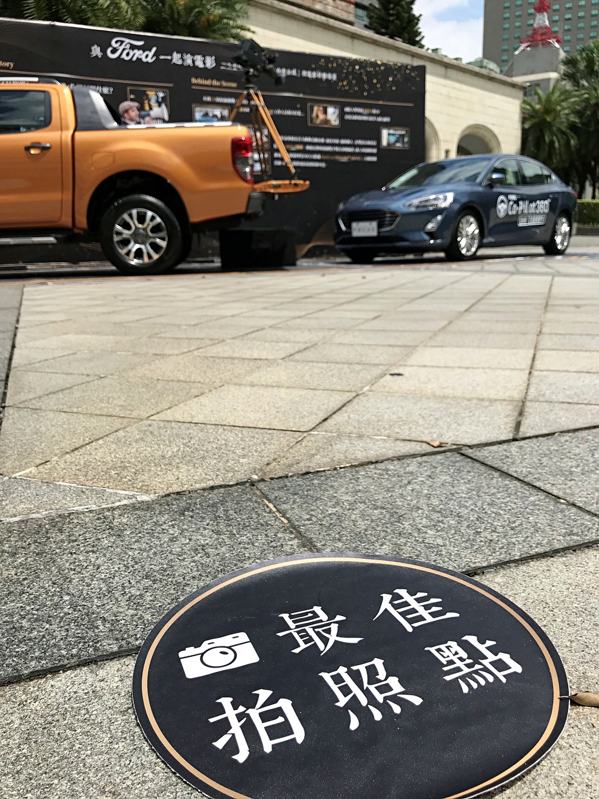 在臺北市中山堂廣場和「與Ford一起演電影」戶外移動式場景中的Ford Ranger和Ford Focus一同拍攝演很大的劇照或短影片。
