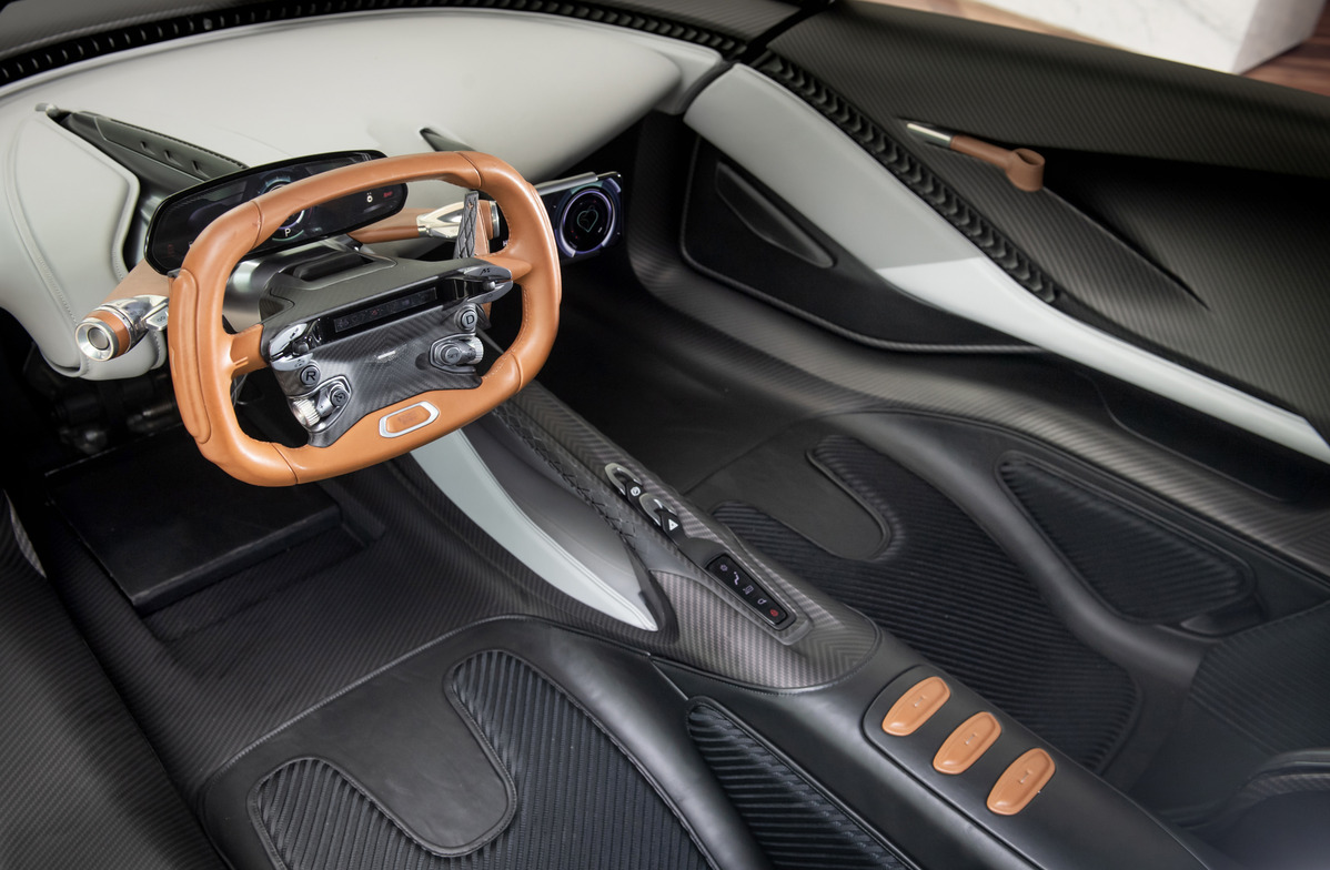 進入車艙,便不難發現ASTON MARTIN Valhalla在各個細節部件,緊扣「F1終極道路版」的核心理念。不同於女武神Valkyrie,ASTON MARTIN Valhalla顧及道路駕駛的實用性,擁有更大的駕駛艙空間,亦在保有濃厚競技氛圍的前提下,爭取更多儲物細節;向上開啟的LMP1車門設計,則便於乘客進出車室。駕駛座秉持「APEX 人體工學」概念,將駕駛人後背中點、方向盤及踏板一線對齊,在特殊設計的極低坐姿下,減少膝蓋受壓。